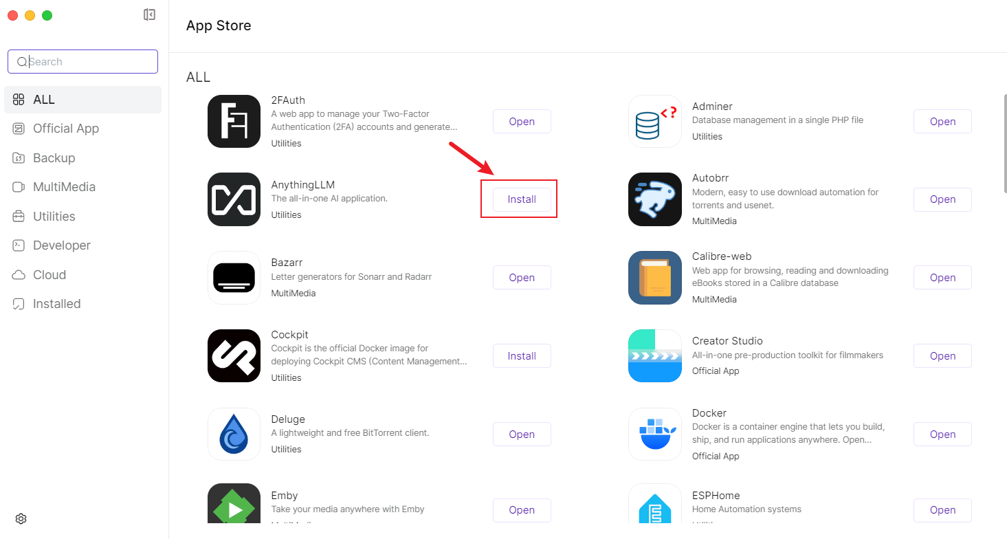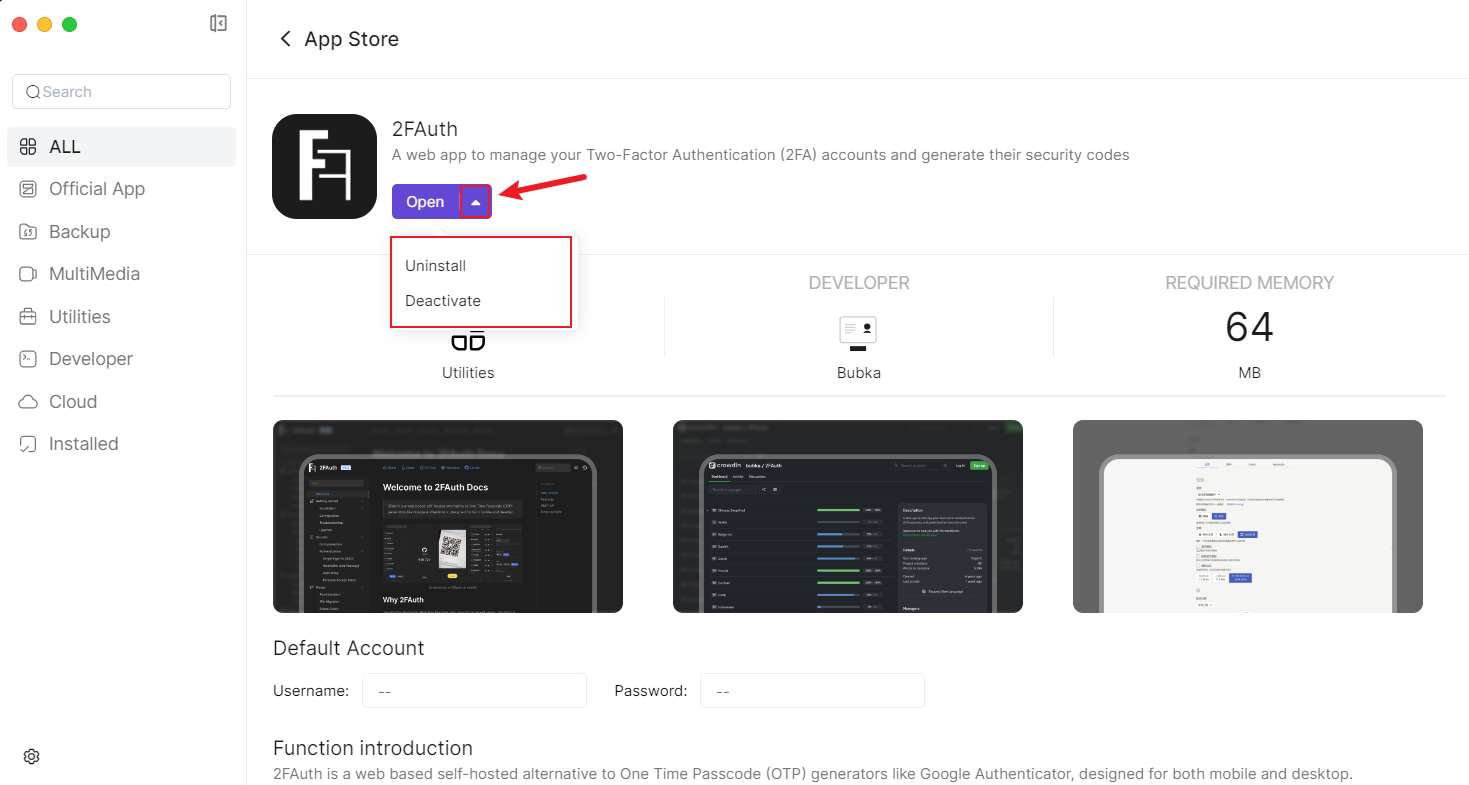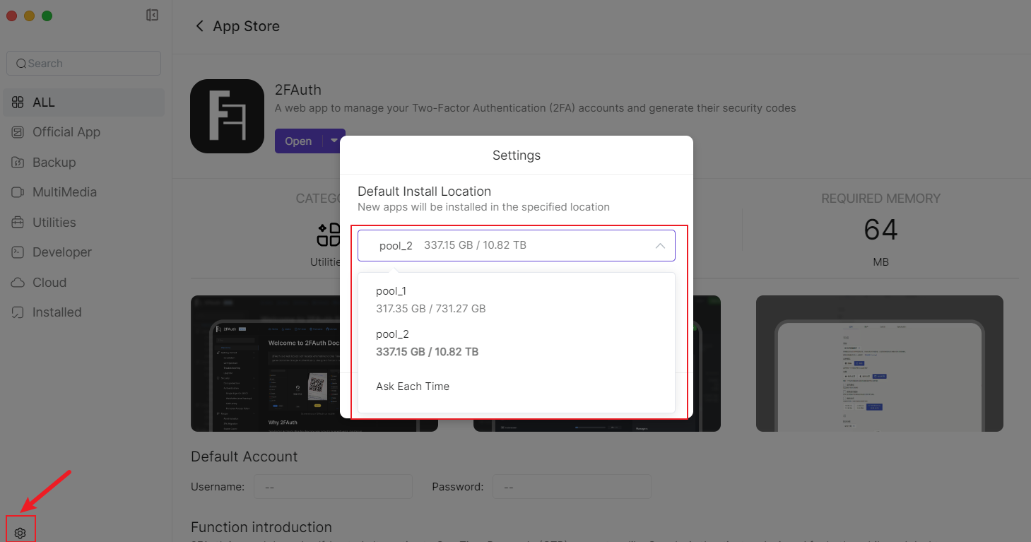 Go to the [App Store -> Settings] page, where you can modify the default settings of the application center. Default Storage Location: Specify that new applications are installed in the designated default storage location.