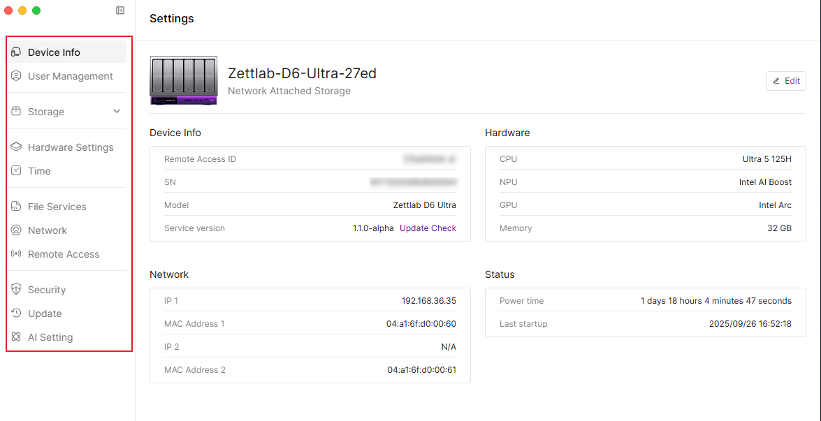1. Log in to Zettlab NAS using the administrator account and click【settings】.