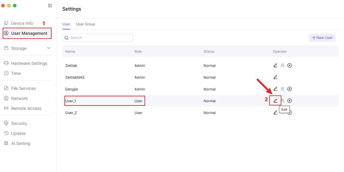2. In the【User Management】page, select a normal user and click the【Edit】button on the right.