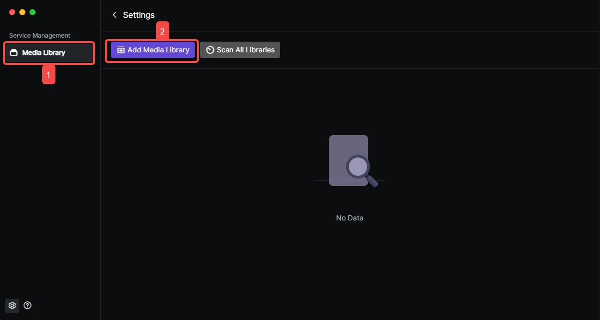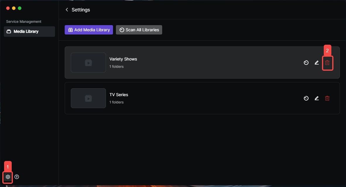 2.In the settings menu, click "Media Library", select the corresponding library, and click "Delete".