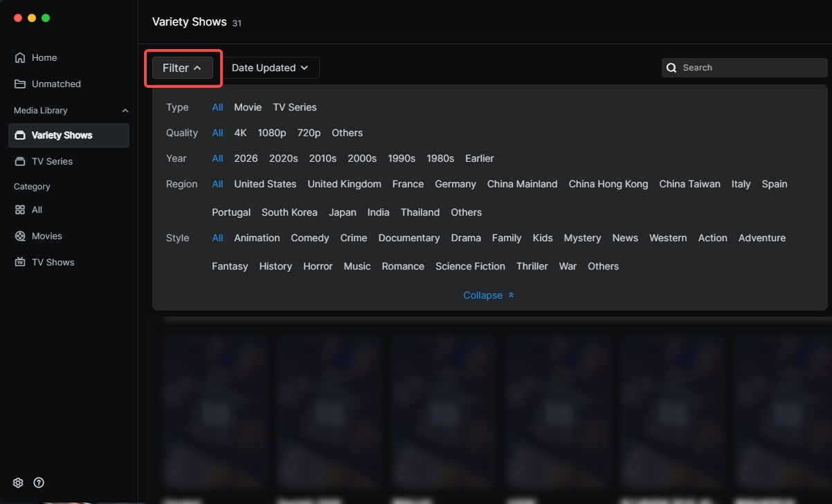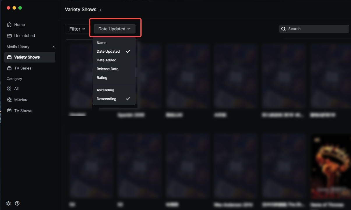Sort Function:Supports sorting by Name, Date Added, Date Updated,Release Date, and Rating. You can choose Ascending/Descending order for personalized management.