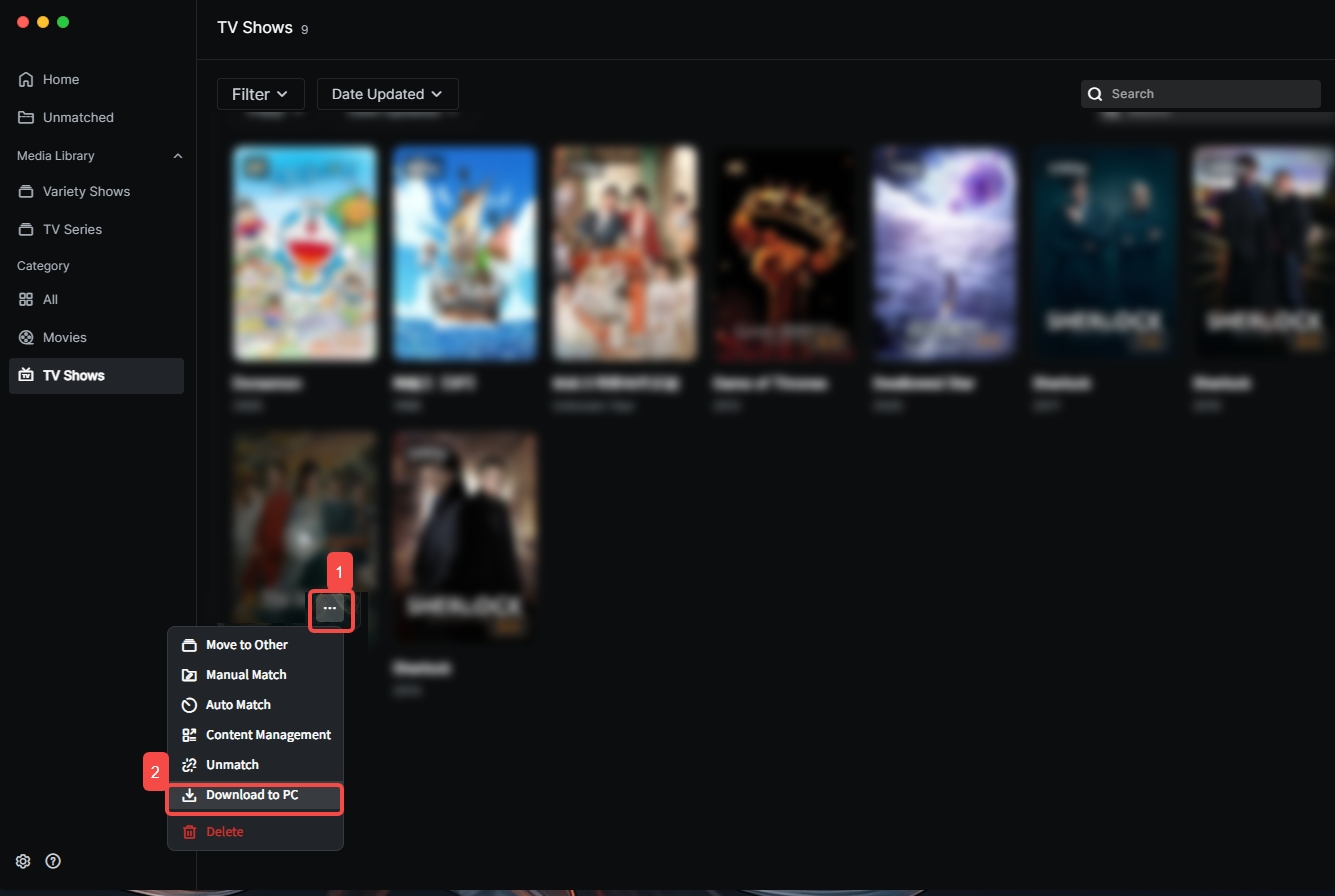 1.Hover over a poster card, click "..." > "Download to PC".
