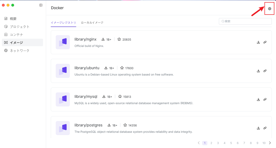 Dockerのイメージページで、以下の操作を行います: