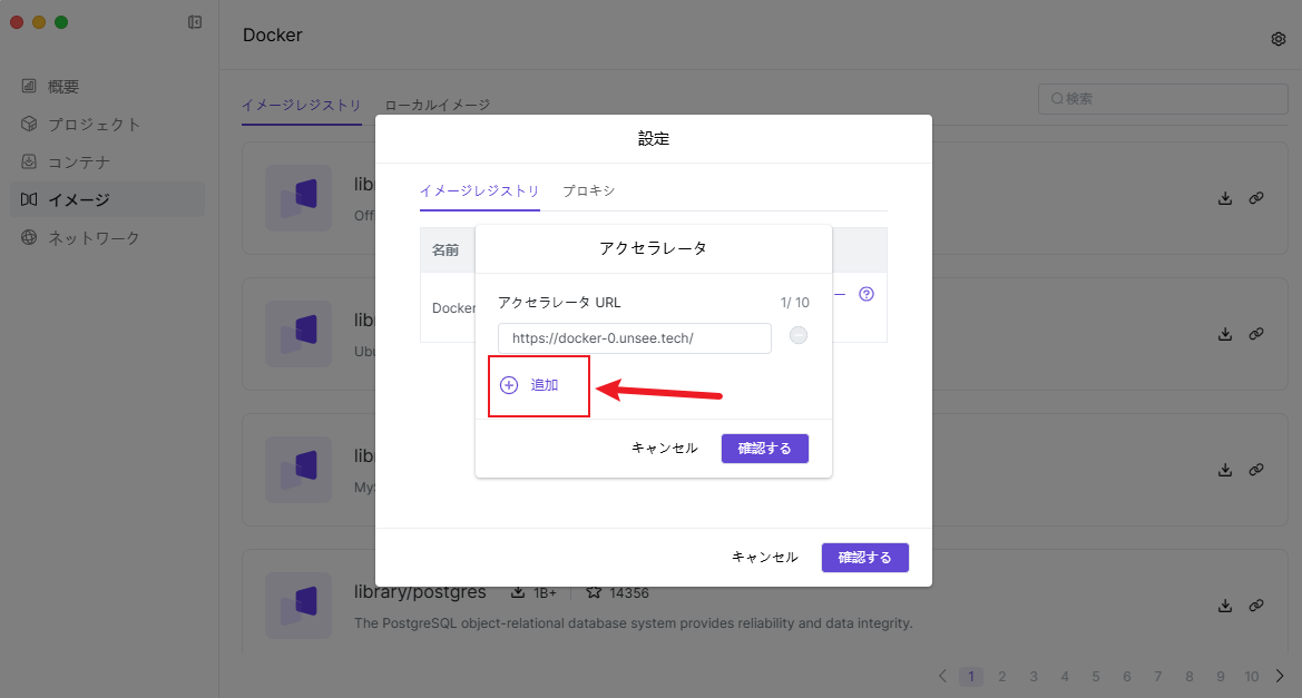 ● イメージの設定でイメージアクセラレータを設定、イメージソースを追加、およびDockerプロキシを設定(プロキシサーバーはご自身で構築する必要があります)。