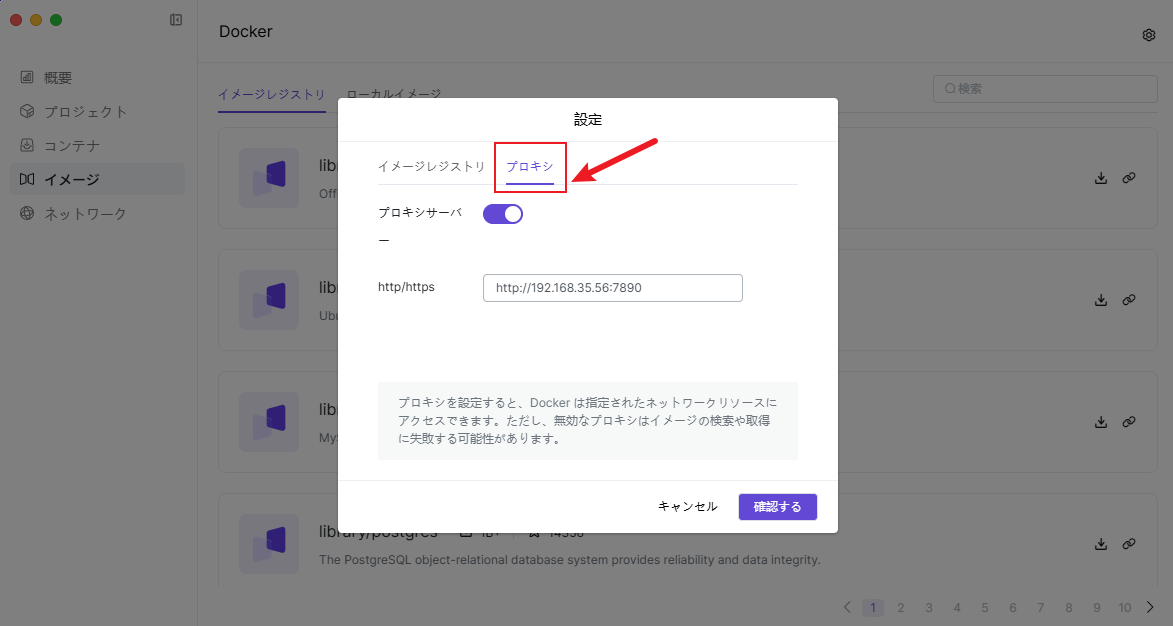 【Docker】はイメージプロキシ機能の設定をサポートしており、プロキシサーバーを介してイメージをダウンロードしNASに転送します。 4.1 イメージページで、【設定】ボタンをクリックします。