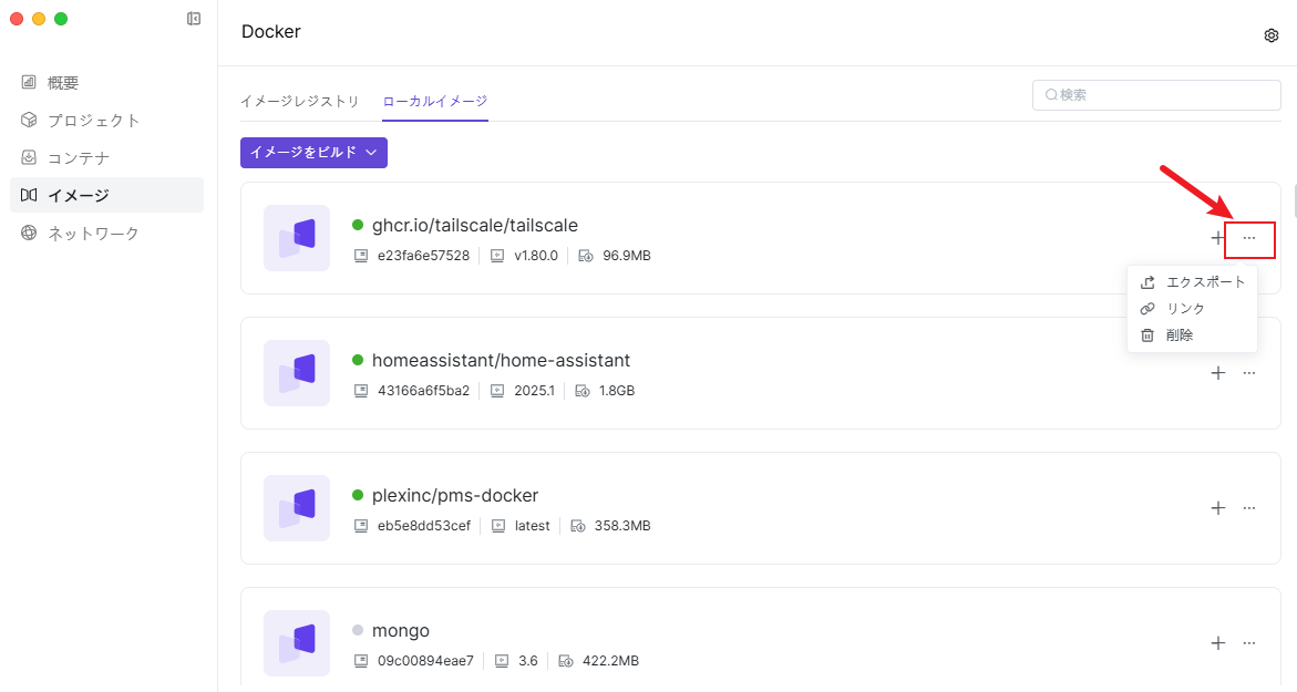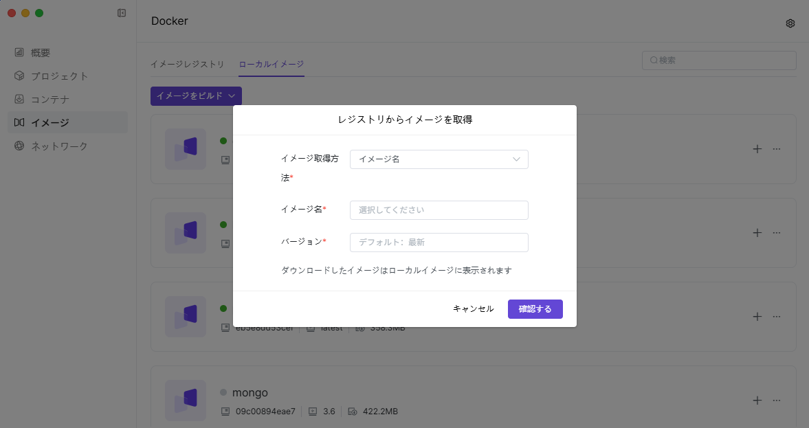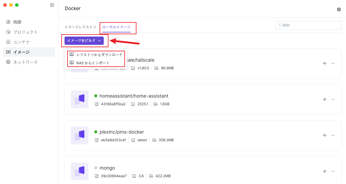 ローカルイメージには、ダウンロードまたはDockerにインポートされたイメージが保存されており、このページでこれらのイメージを管理および使用できます。 イメージリポジトリからイメージをダウンロードするほか、以下の方法でもイメージを追加できます: