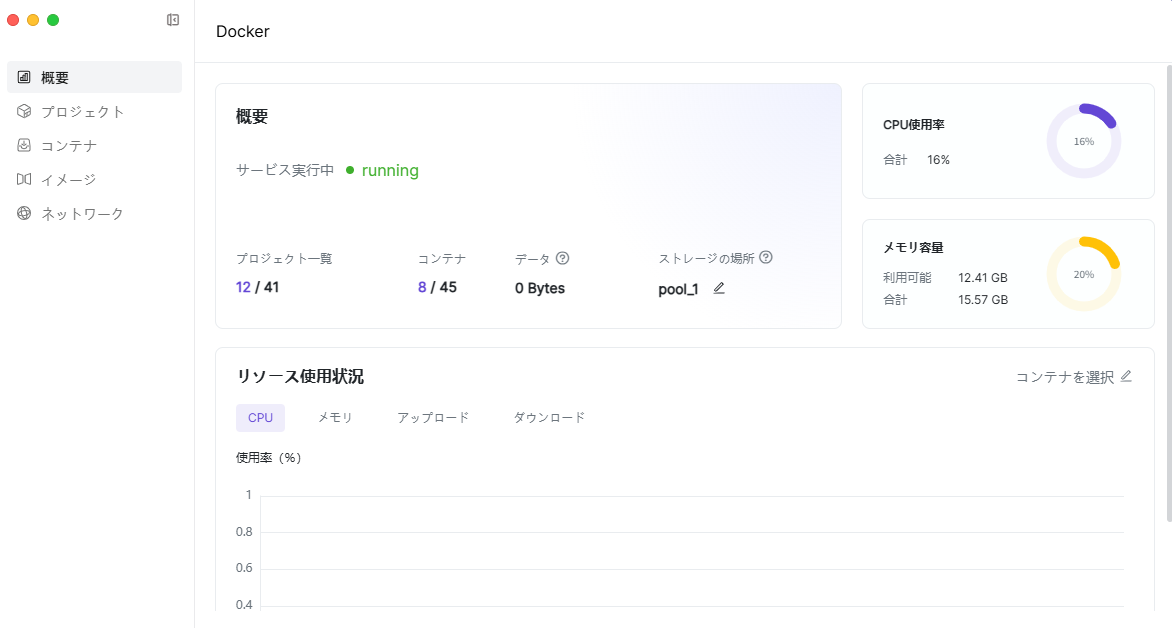概要インターフェースは、シンプルで明確なビューを提供し、Dockerサービスの全体的な稼働状況を迅速に把握するのに役立ちます。 主に以下の内容が含まれます: