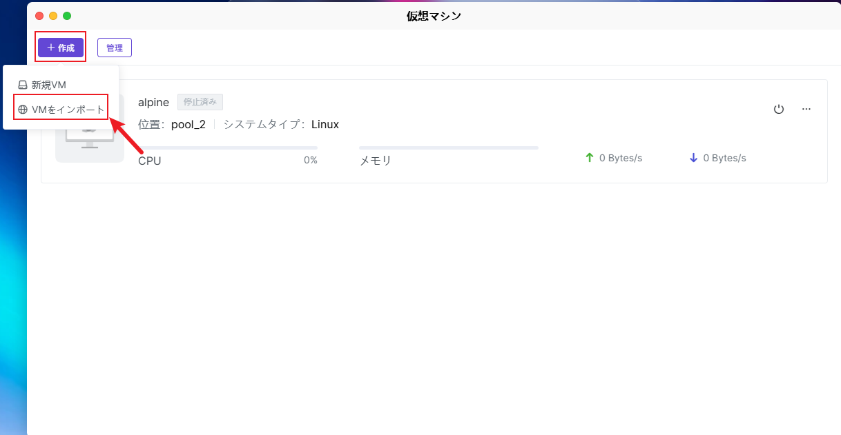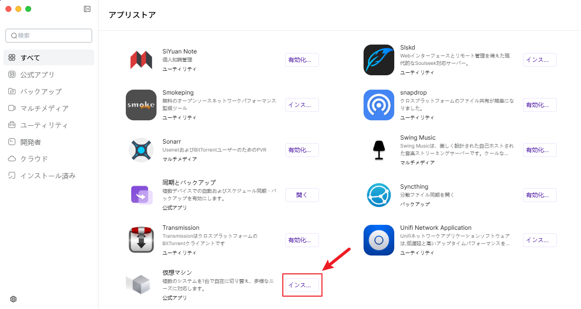 仮想マシンを初めて使用する場合、アプリ ストアから仮想マシンをインストールできます。