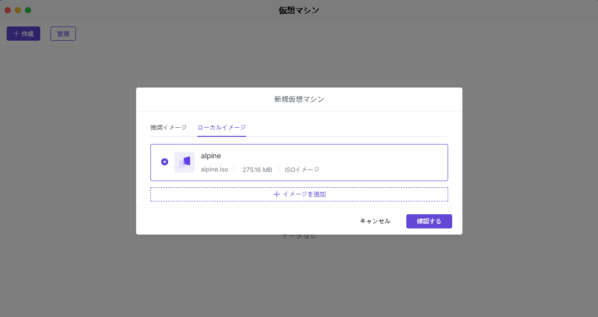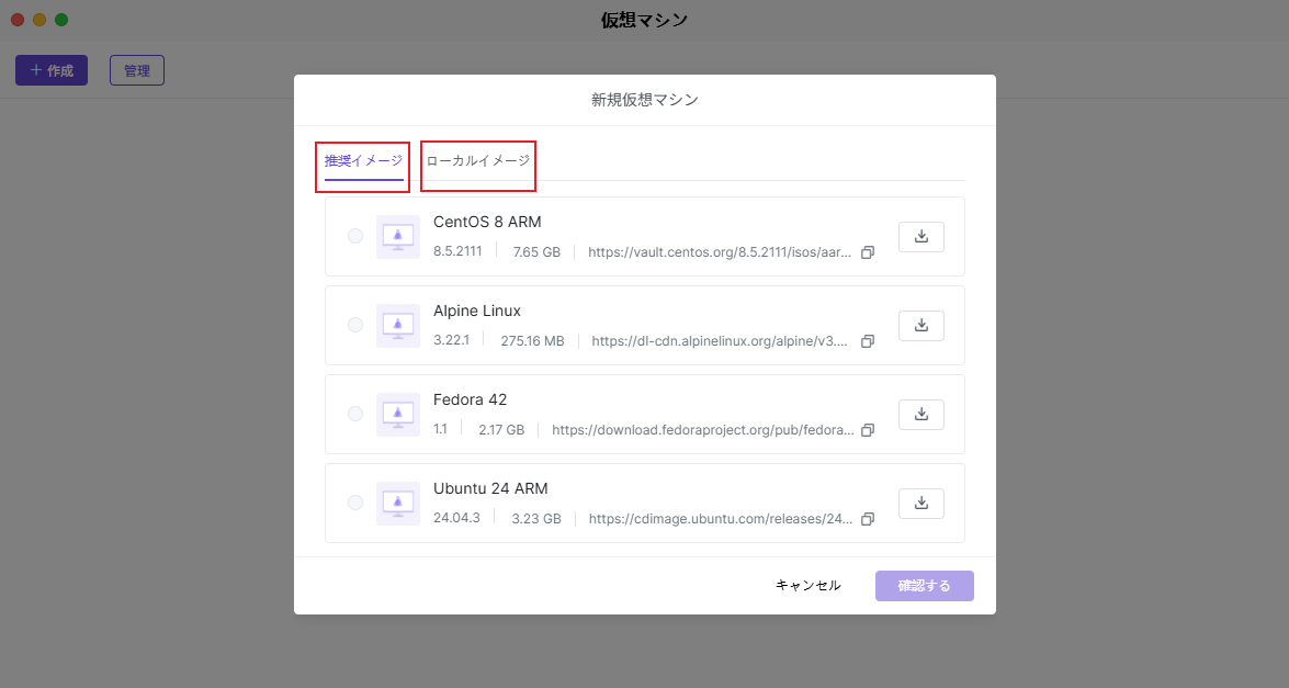 イメージは仮想マシンオペレーティングシステムのインストールパッケージです。イメージを設定することで、仮想マシンに特定のオペレーティングシステムをインストールまたは実行できます。イメージはローカルのイメージライブラリから選択できます。