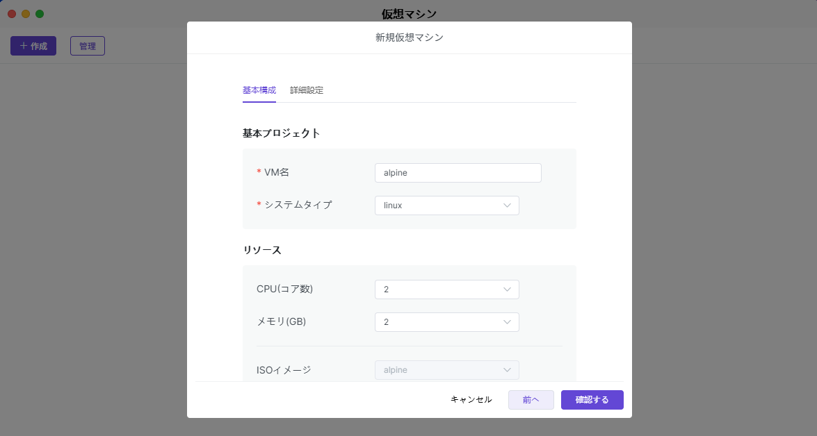 3. 仮想マシンの作成